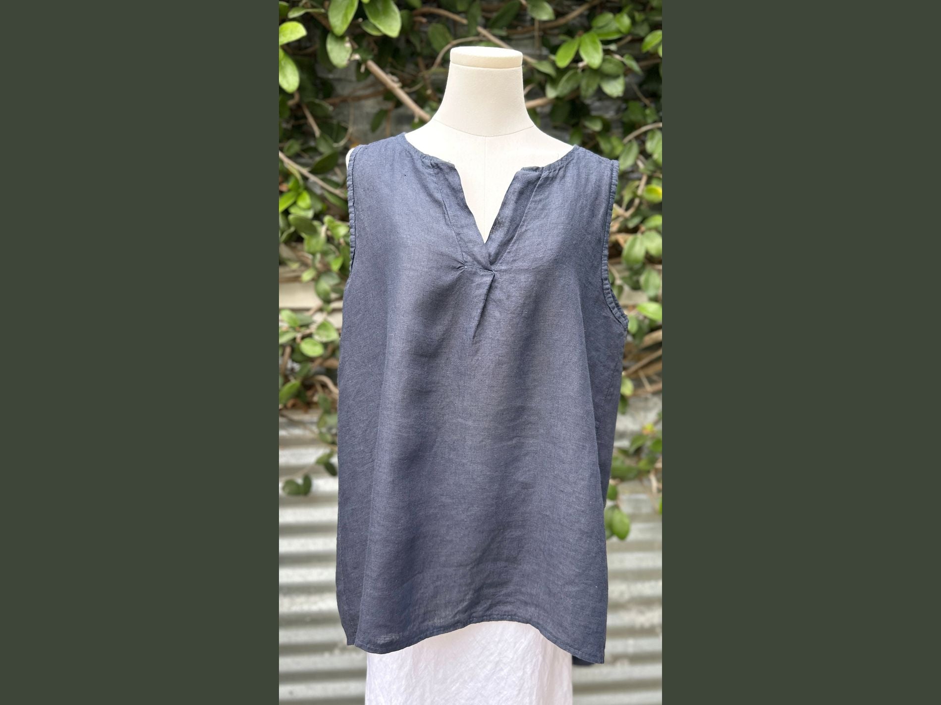 This breezy sleeveless tank top is crafted from 100% linen, perfect for keeping cool with a touch of style. Featuring a charming pinched v-neck, it adds a playful twist to your everyday look. Designed in one size to effortlessly fit and flatter, this blouse is your go-to for sunny days and casual adventures.