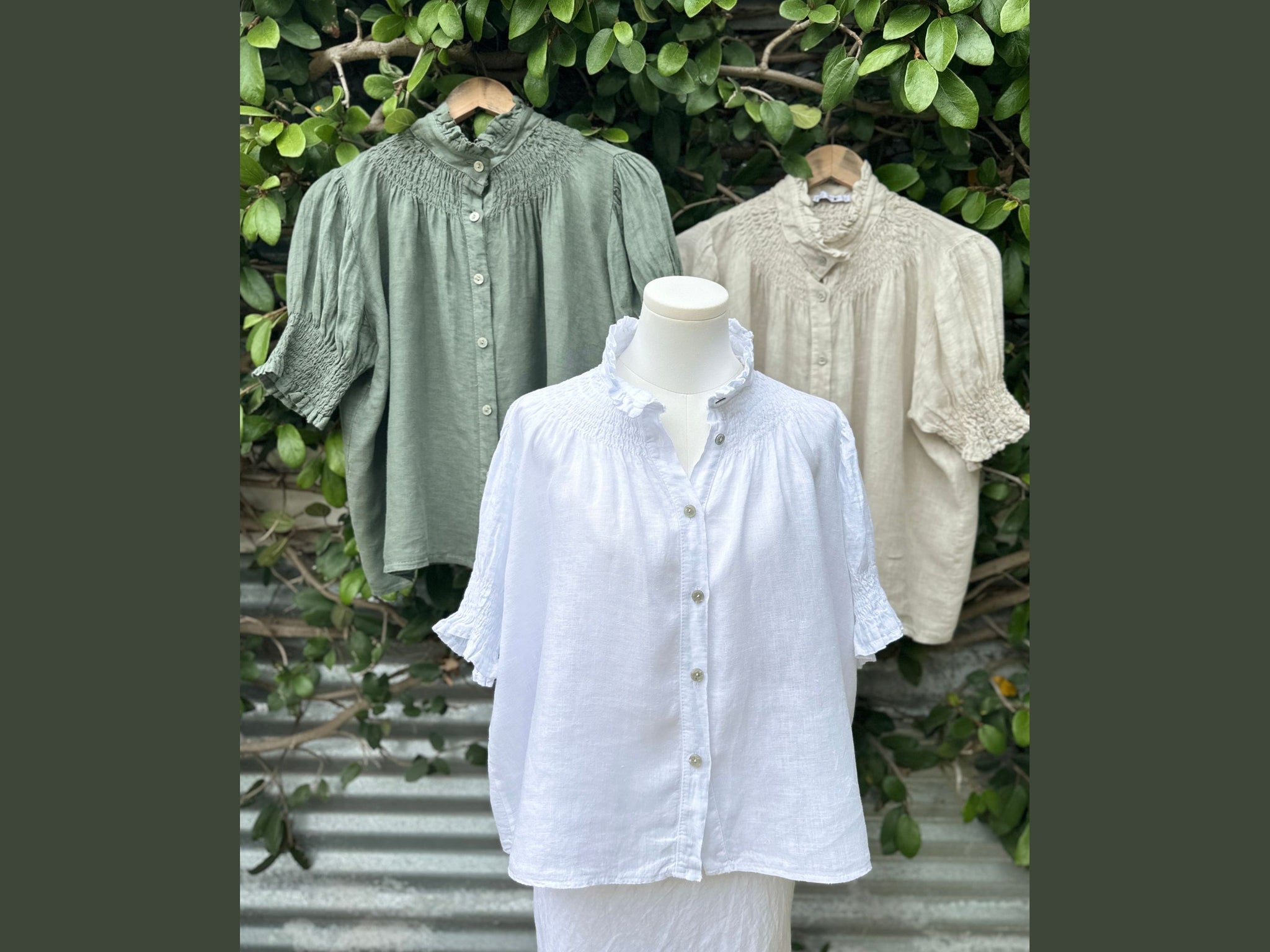 short sleeve smocked linen blouse